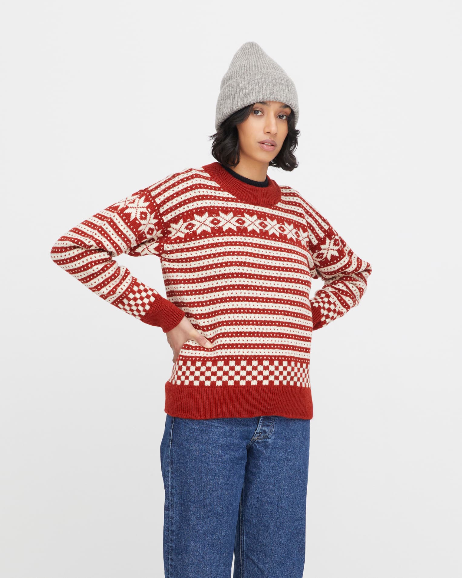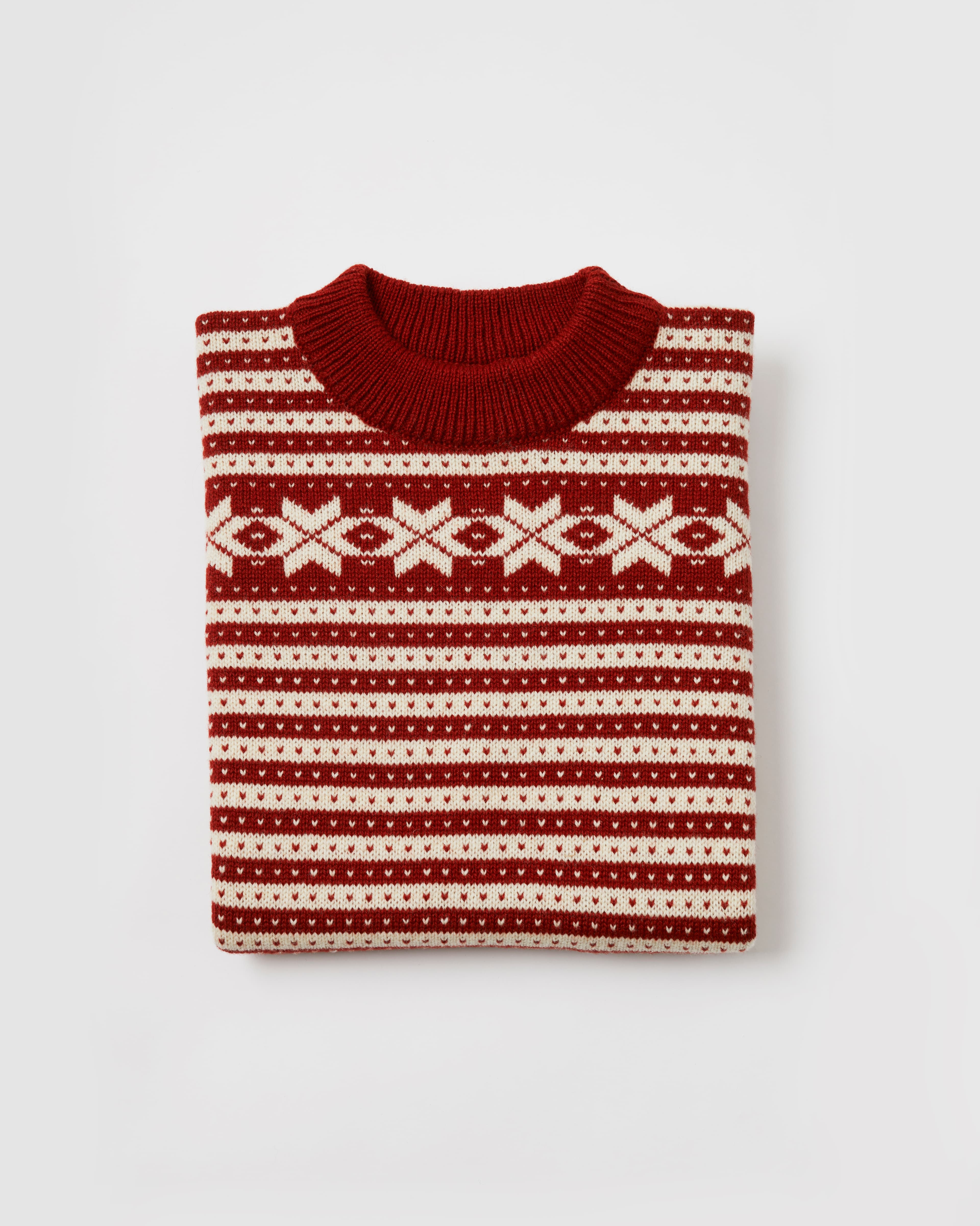 Se alle fargerDet ikoniske Fanamønsteret består ofte av svarte og hvite, eller røde og hvite kontraster, med border, ruter og åttebladsroser. Dette mønsteret har røtter tilbake til 1800-tallet, og har blitt bevart og videreført gjennom generasjoner av strikkere. Mange forbinder det med både håndstrikkede skatter fra bestemor og moderne versjoner av ullgensere i butikkene.
