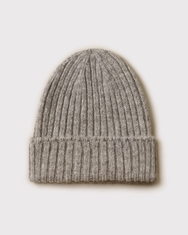 Velg mellom seks klassiske og anvendelige farger: svart, koksgrå, grå, midnattsblå, kamelbrun og beige melert. Luen er strikket i dobbel ribb.