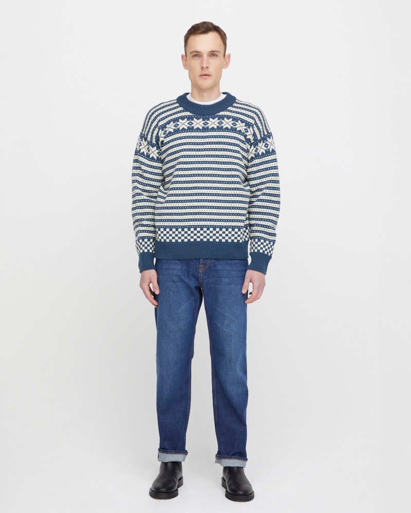 Genseren har en rett passform, rund hals og ermer med vrangbord – et allsidig uttrykk som fungerer like godt i hverdagen som på tur. Klassiske farger som grå og blå, gjør den anvendelig og tidløs. Genseren kommer i størrelsene S–XXL. Dette er et plagg med sjel og tradisjon – en ekte del av norsk kulturarv, produsert i Norge.