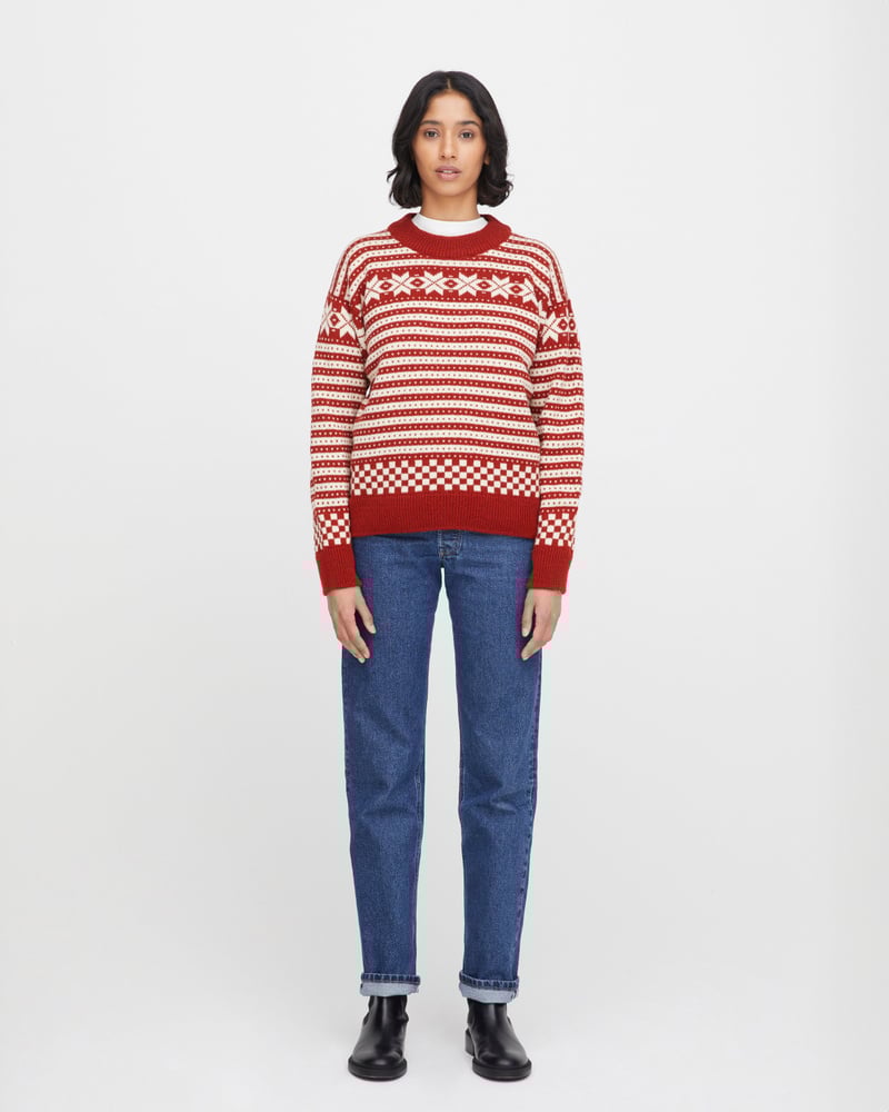 Til dame kommer Fanagenseren i vakre og tradisjonelle farger som grå, blå og rustrød i kombinasjon med hvit. Produsert i Norge med respekt for tradisjon og godt håndverk, får du en genser som varer i generasjoner.