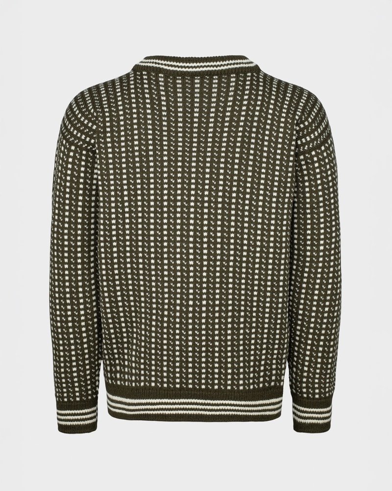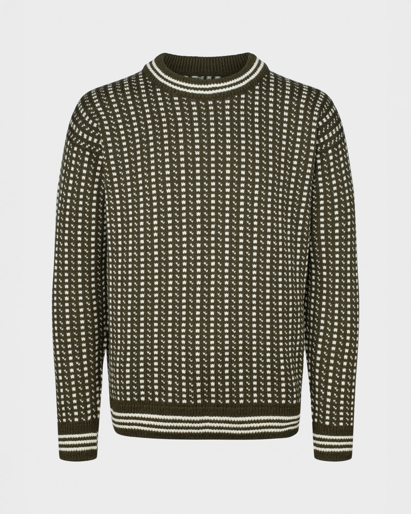 Islenderen er en ikonisk ullgenser med røtter i norsk kystkultur – kjent for varme, slitestyrke og sitt tidløse uttrykk. Den er strikket i norsk ull og varmer like godt på sjøen som i byen. Velg mellom tre fargealternativer: den autentiske i hvit og svart, den maritime i blå og hvit, eller den jordnære i skogsgrønn og hvit. Genseren kommer i størrelsene S–XXL. Dette er et plagg med sjel og tradisjon – en ekte del av norsk kulturarv, produsert i Norge.