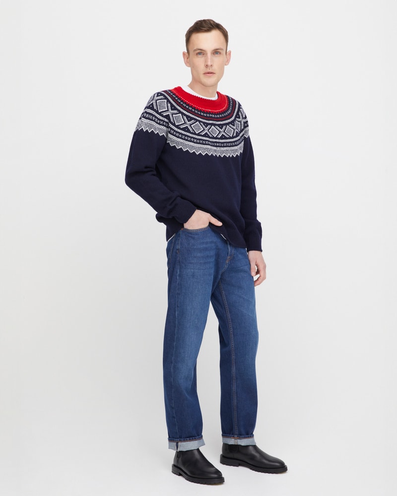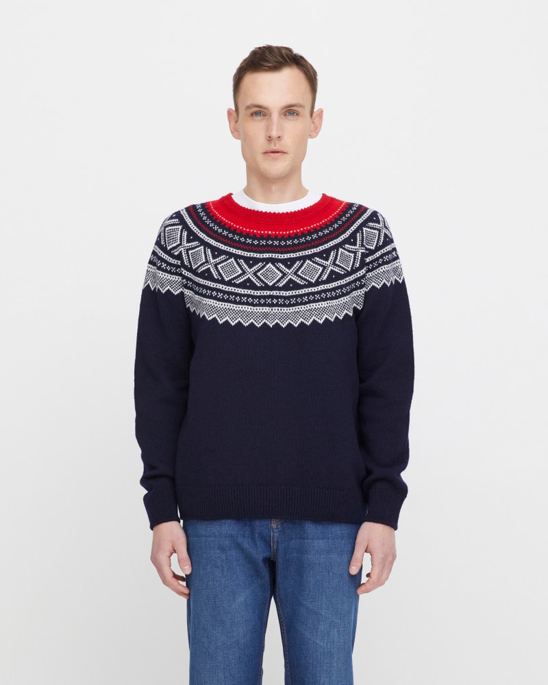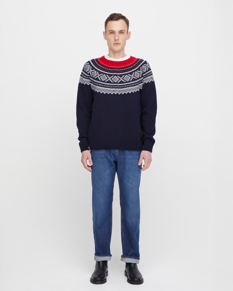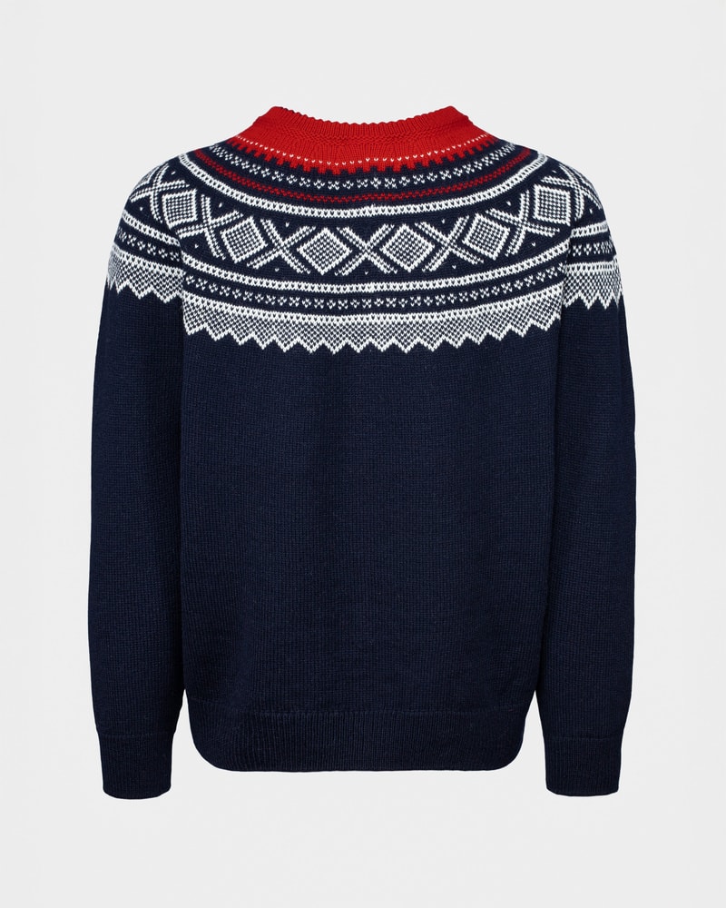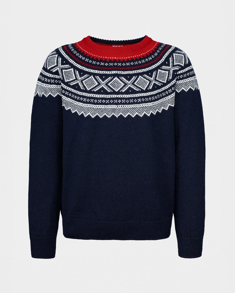Mariusgenseren er et symbol på norsk design og friluftsliv. Dette er en variant til herre med rundt bærestykke i den ikoniske marineblå varianten med røde detaljer. Dette er et tidløst plagg med ekte norsk særpreg. Kommer i størrelse S, M og L.