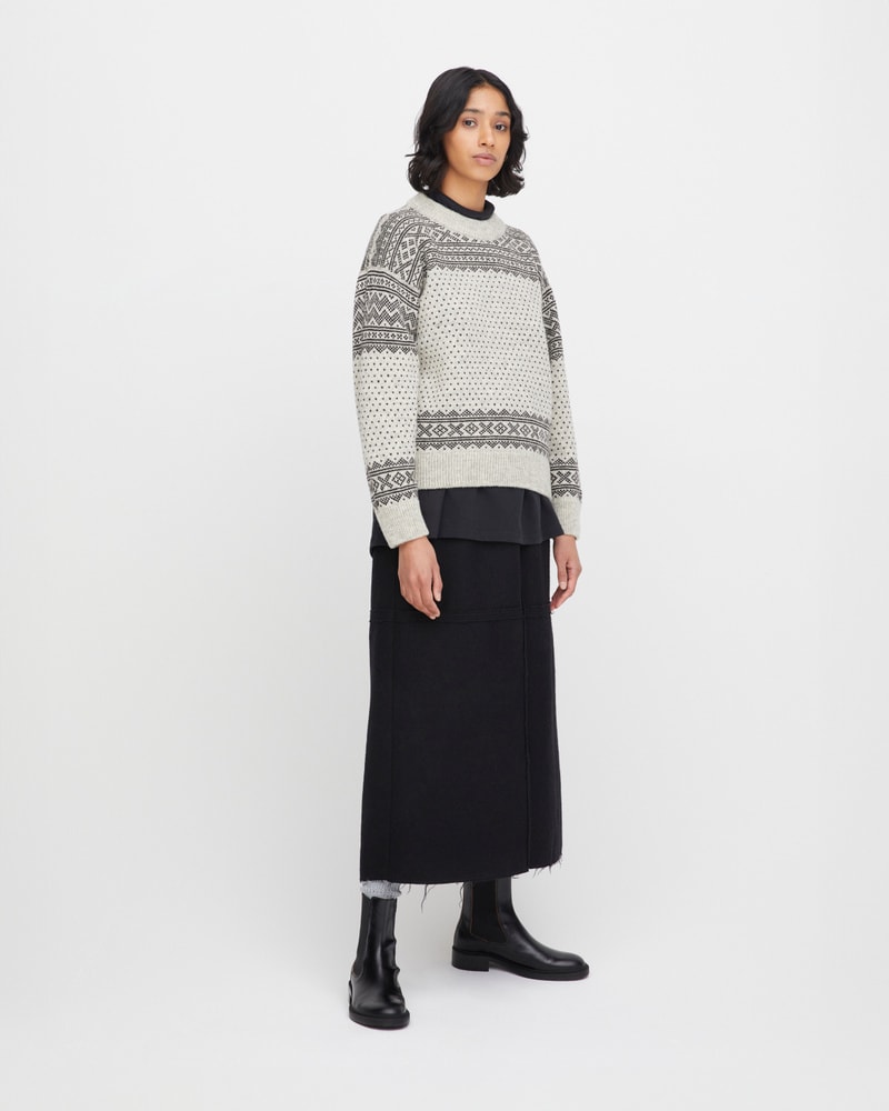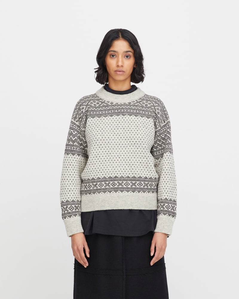 Setesdalsgenser til dame er en moderne tolkning av et av Norges mest ikoniske strikkemønstre. Det unike lusemønsteret og de dekorative bordene har røtter tilbake til Setesdal på 1800-tallet – et mønster som i dag regnes som selve symbolet på norsk strikkekultur.