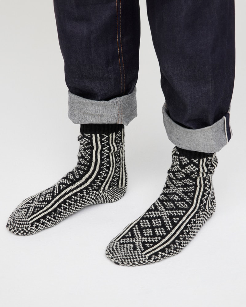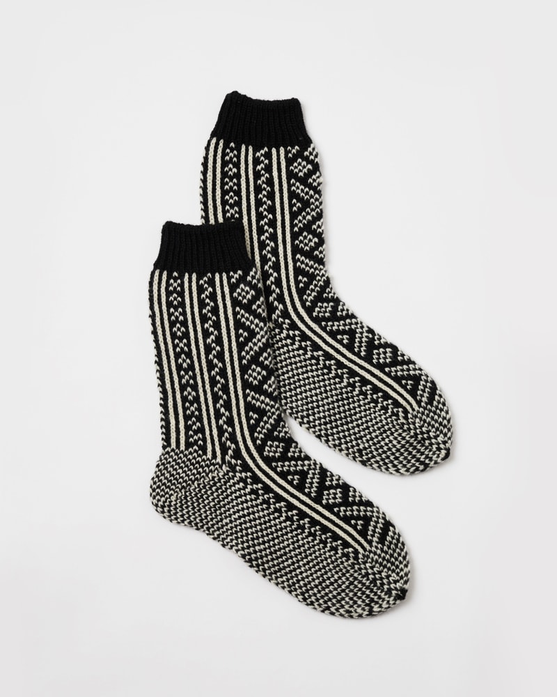 Kombiner med Setesdalgenser i svart og hvitt for et komplett hytteantrekk som holder deg varm gjennom hele vintersesongen. Sokkene finnes i størrelsene S, M og L. Dette tilsvarer 36-37/38, 38-40/41 og 41-44/45.