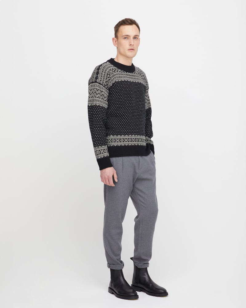 Genseren er strikket i norsk ull og produsert i Norge. Den kombinerer kulturarv med funksjonelle egenskaper som varme, pusteevne og god holdbarhet.Til herre kommer Setesdalsgenseren i to tidløse fargevalg: den klassiske sorte med hvite lus og en stilren grå med sorte lus.