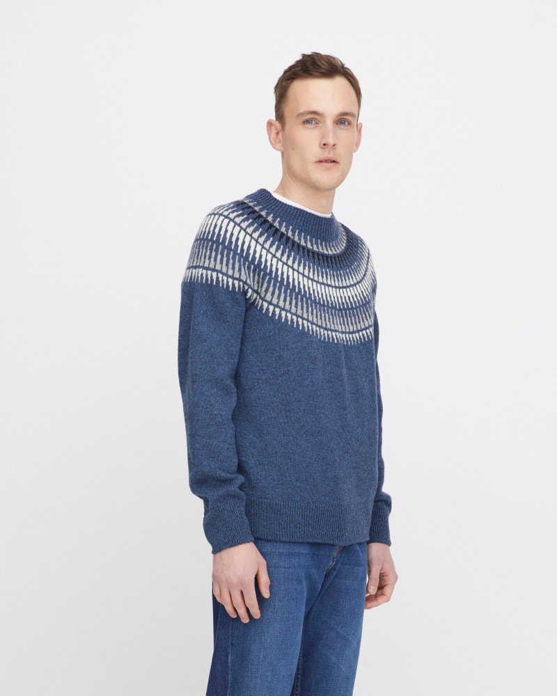 Spiret til herre kommer i en delikat blå farge og en lekker koksgrå farge. Uansett fargevalg fremheves det karakteristiske mønsteret som gir genseren sitt særpreg. Tilgjengelig i størrelsene S–XXL.